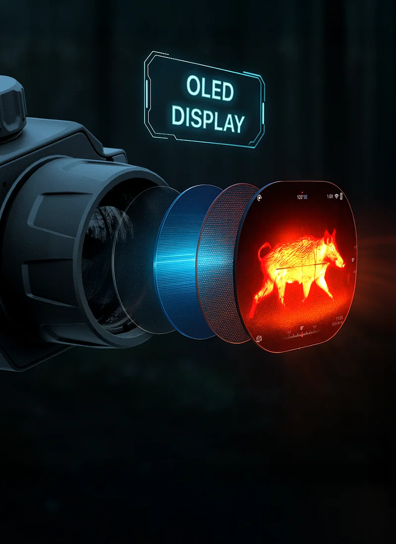 Le Thor 6 mini est doté d'écrans OLED optimisés pour les performances de chaque modèle. La version 256x192 utilise un écran de 0,32" avec une résolution de 800x600, tandis que les modèles 384x288 et 640x512 disposent d'un écran plus grand de 0,49" avec une résolution de 1920x1080 pour une netteté accrue et un contraste plus profond.