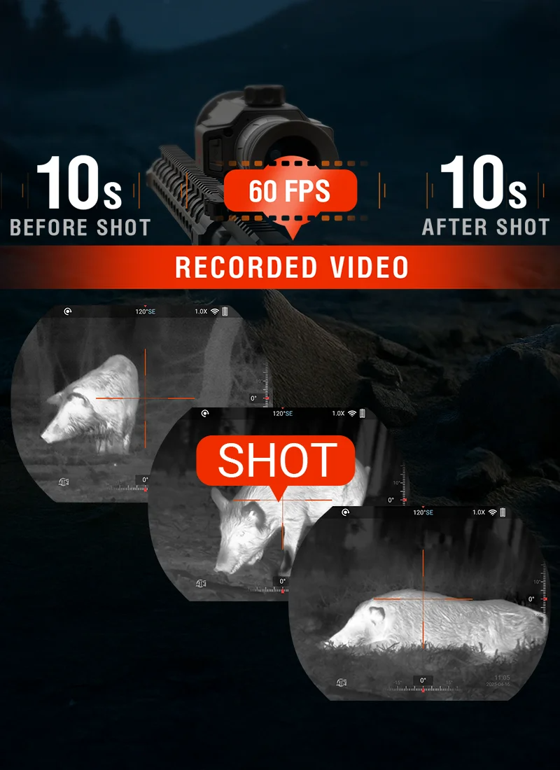 Grâce au WI-FI intégré, votre lunette se connecte directement à un smartphone ou une tablette via l'application ATN, sans câbles ni connexion internet. Utilisez votre appareil mobile comme viseur en temps réel, rejouez instantanément vos tirs ou permettez à un partenaire de chasse de suivre l'action en direct.